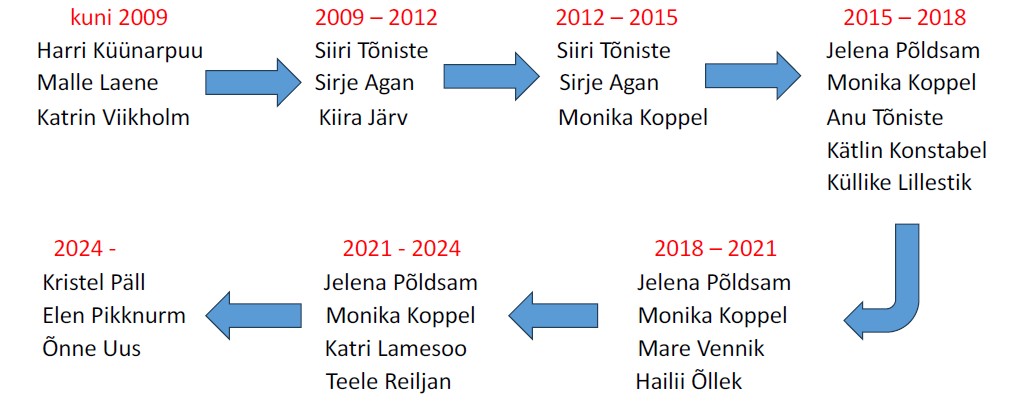 Alates 2009 aastast on Ühingu juhatus valitud iga 3 aasta tagant. Kõik juhatuse liikmed on nähtavad alloleval joonisel: